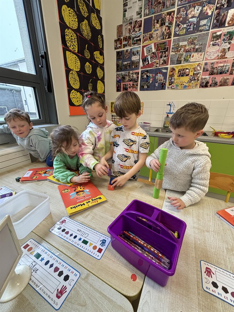 This month, junior infants were learning about 3D Shapes and as an extension balancing and shapes that roll and shapes that stack.
